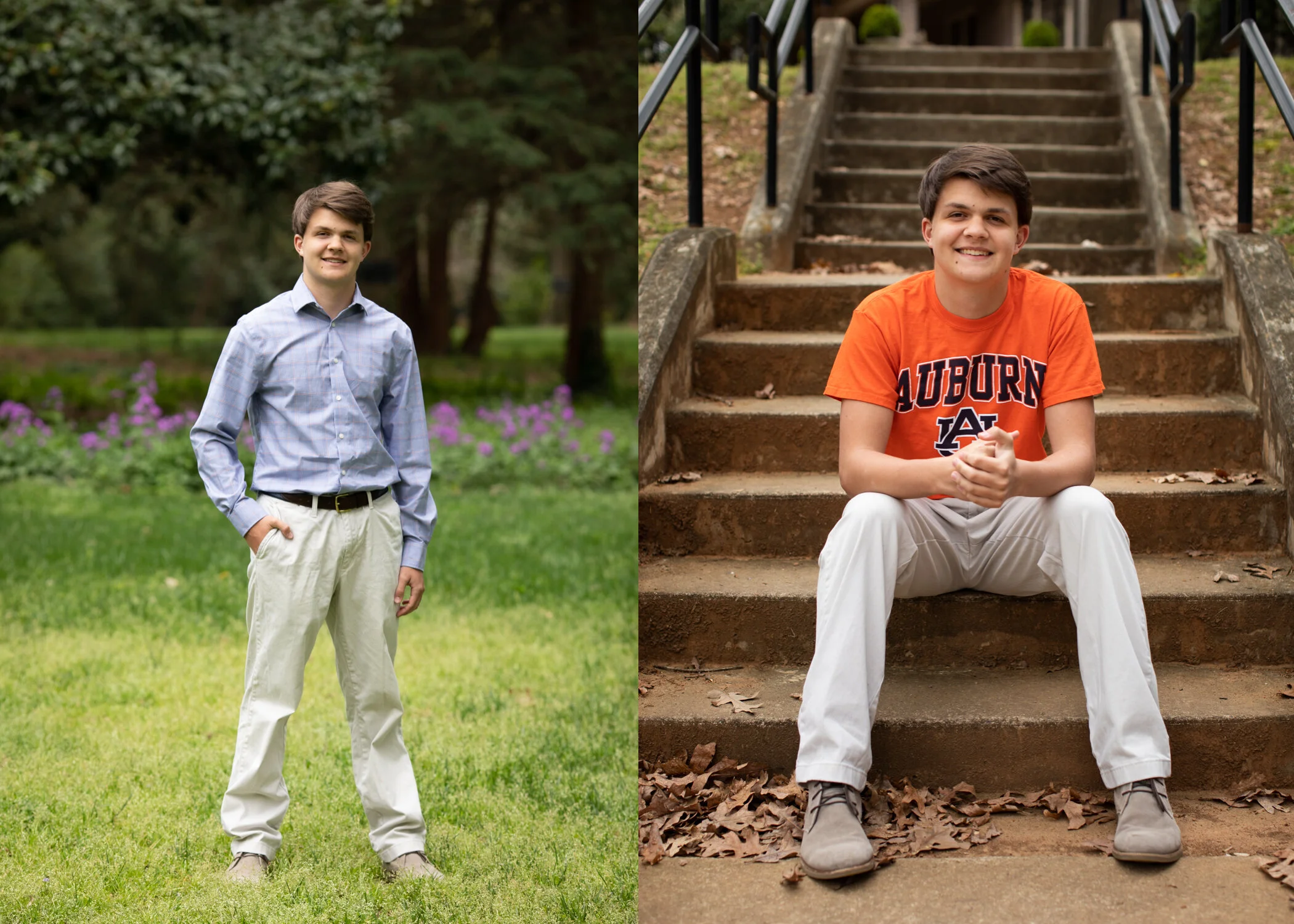 We took these images in South Charlotte when the flowers were starting to bloom and the trees were colorful and pretty. The layering of the trees with the blooms really set this family photo off. Plus I love the color of Anna’s orange jumper with the blues the rest of the family is wearing. Naturally she prefers orange as she is a Clemson Tiger, like her mom.